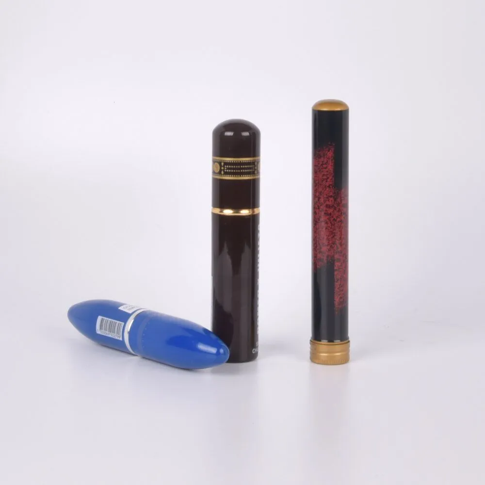 Includes cylindrical two-part sliding tube, crimp with push-on cap, drawn-in neck with push-on cap, and thread with screw-on cap.