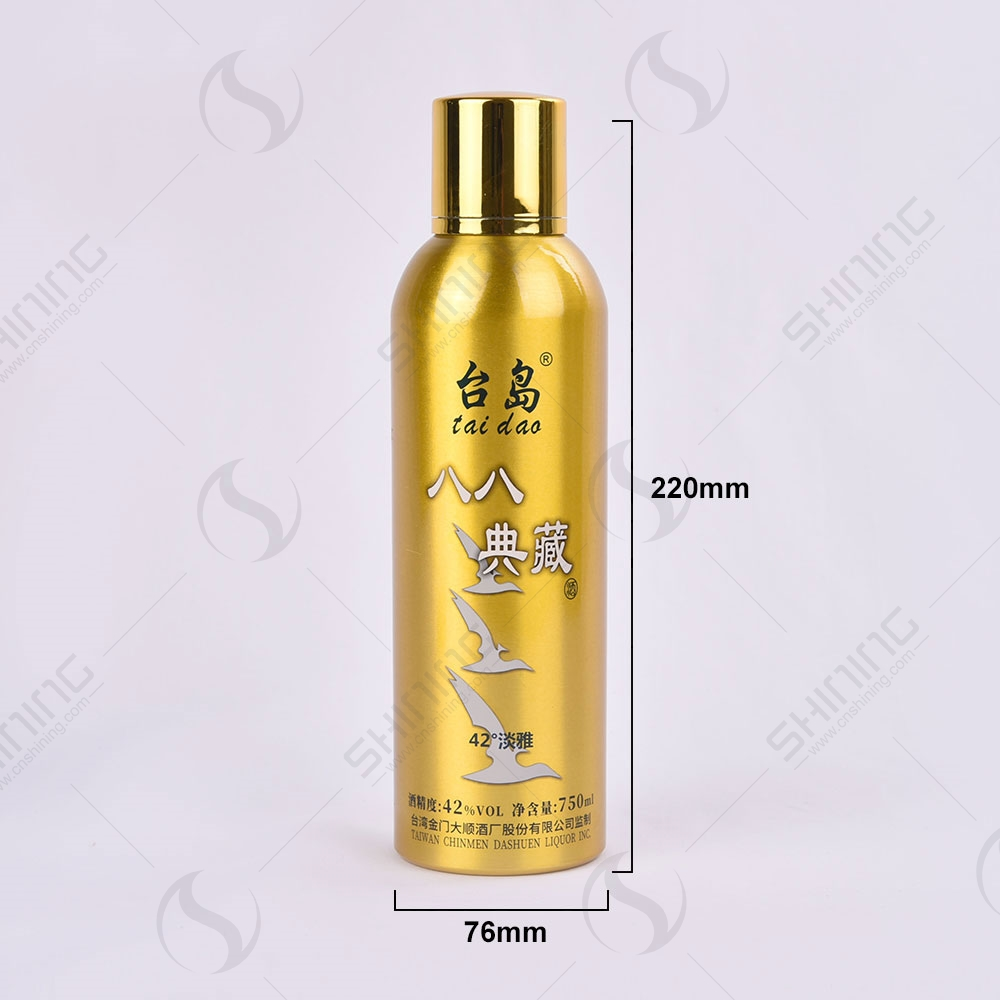 El Botella de aluminio de 25 oz sigue siendo una de las opciones más populares cuando se trata de envases de aluminio de gran capacidad. Nuestra gama de Botella de aluminio de 700 ml y Botella de aluminio de 750 ml Las opciones varían en forma y diseño para adaptarse a diferentes aplicaciones. Las dimensiones comunes incluyen 66 mm de diámetro y 265 mm de altura, y 73 mm de diámetro y 220 mm de altura.