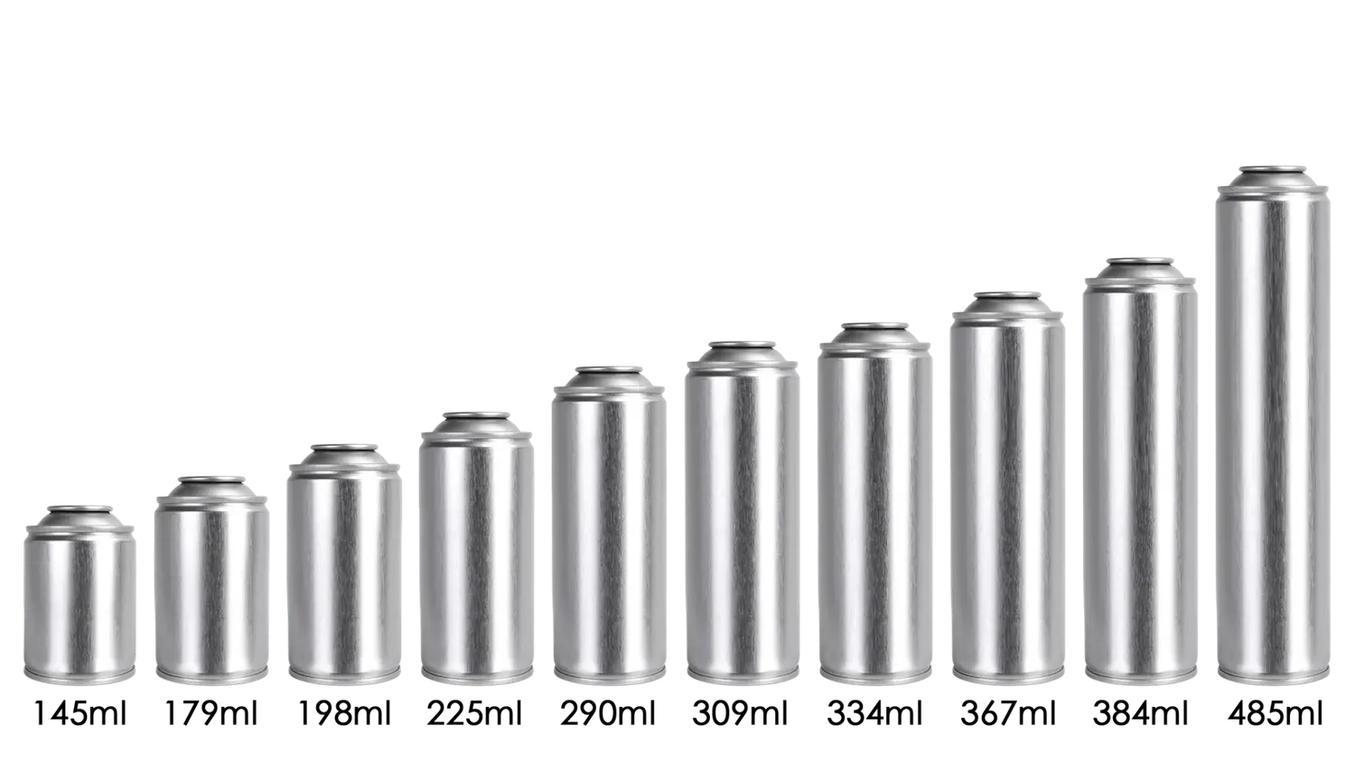 Shining Packaging offers 52mm necked-in aerosol cans with a versatile size range to meet diverse needs. Available in heights from 73mm to 240mm, these cans deliver full-capacity volumes of 145ml to 485ml. This flexibility ensures top performance for personal care, automotive, and household products, seamlessly blending compact design with ample capacity.