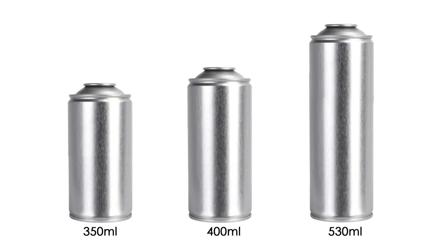 Our 60mm Neck-in aerosol cans are available in standard sizes, with heights ranging from 100mm to 240mm and capacities from 325ml to 789ml. These adaptable cans suit diverse uses, including personal care, household products, and industrial sprays, providing dependable performance and practical storage solutions for your business needs.