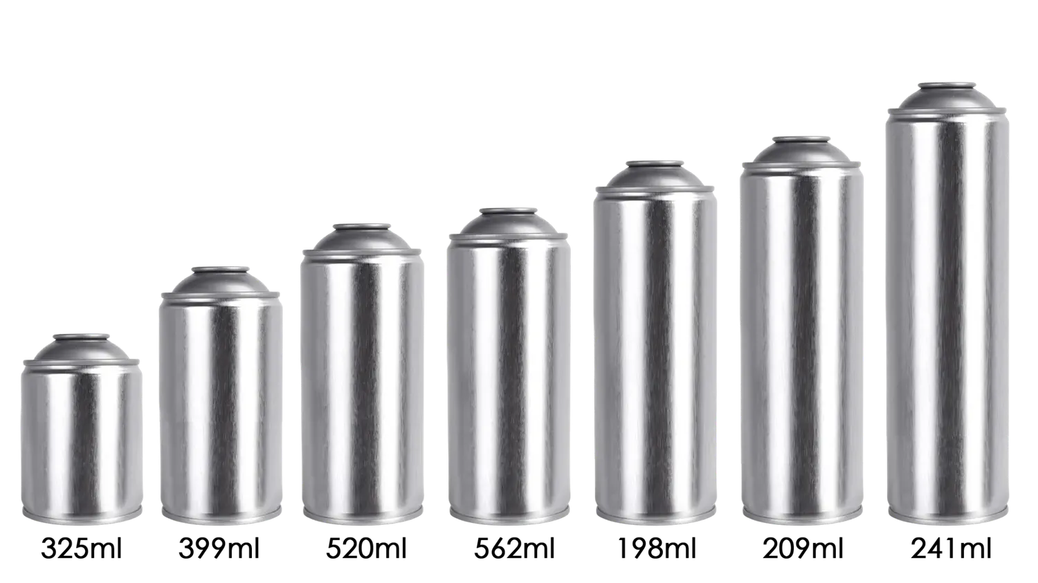 Our 65mm Neck-in aerosol cans come in heights from 98mm to 300mm, offering capacities from 325ml to 789ml. These durable three-piece steel cans are perfect for industrial, household, and automotive sprays like lubricants, cleaning agents, and insecticides, making them ideal for high-volume applications.
