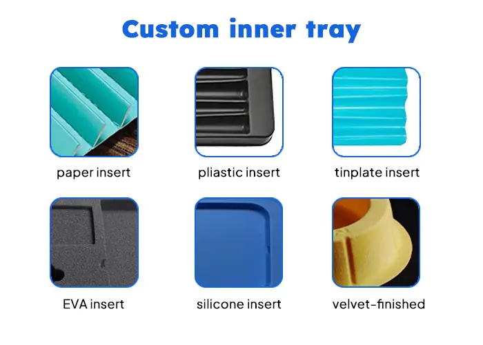 We provide full customization including CMYK and Pantone printing, embossing/debossing, matte/glossy finishes, and metallic effects. Choose from various lid types like hinged, slide-top, or screw-on, with add-ons such as insert trays.