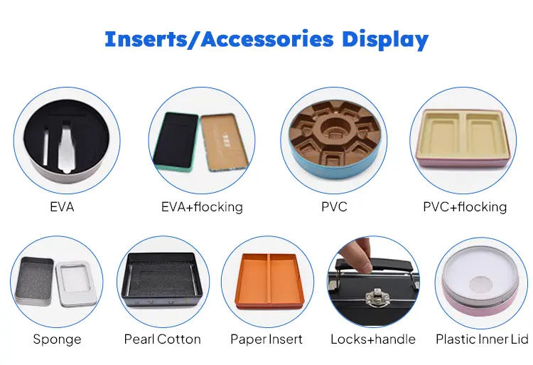 To elevate presentation and protect delicate treats, optional accessories are available. Linings such as plush velvet or smooth satin add a luxurious touch inside the tin. Molded PET or PVC trays, EVA foam, or cardboard dividers can be inserted to cushion and organize chocolates and truffles. We can also equip tins with decorative metal handles, ribbon-tied closures, or small locks on the lid for added security and reuse. These features make the packaging feel like a special gift box while keeping every piece of chocolate securely in place during handling.