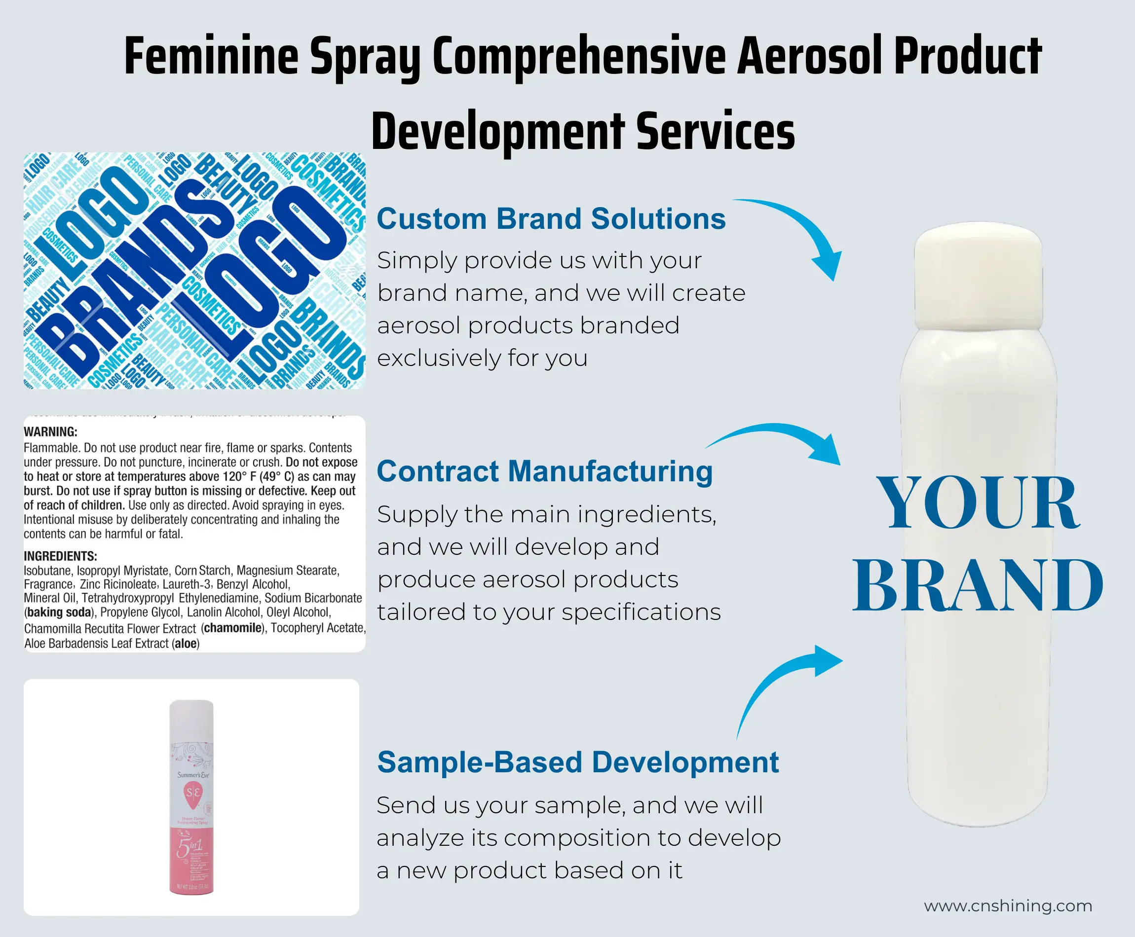 Este artigo explora os princípios fundamentais, os ingredientes da marca, a precificação e tamanhos de embalagem de sprays femininos. Como fabricante especializado em latas de alumínio para aerossol, oferecemos uma gama de latas vazias em diversas capacidades, incluindo 40 ml, 50 ml, 75 ml, 100 ml, 125 ml, 200 ml, 250 ml, 300 ml, 400 ml, 500 ml e 750 ml. Também fornecemos conjuntos completos de válvulas e atuadores. Além disso, caso necessite de serviços de envase, oferecemos soluções de envase OEM personalizadas para atender às suas necessidades. Podemos utilizar nossas fórmulas exclusivas ou desenvolver novas formulações com base em suas necessidades específicas.