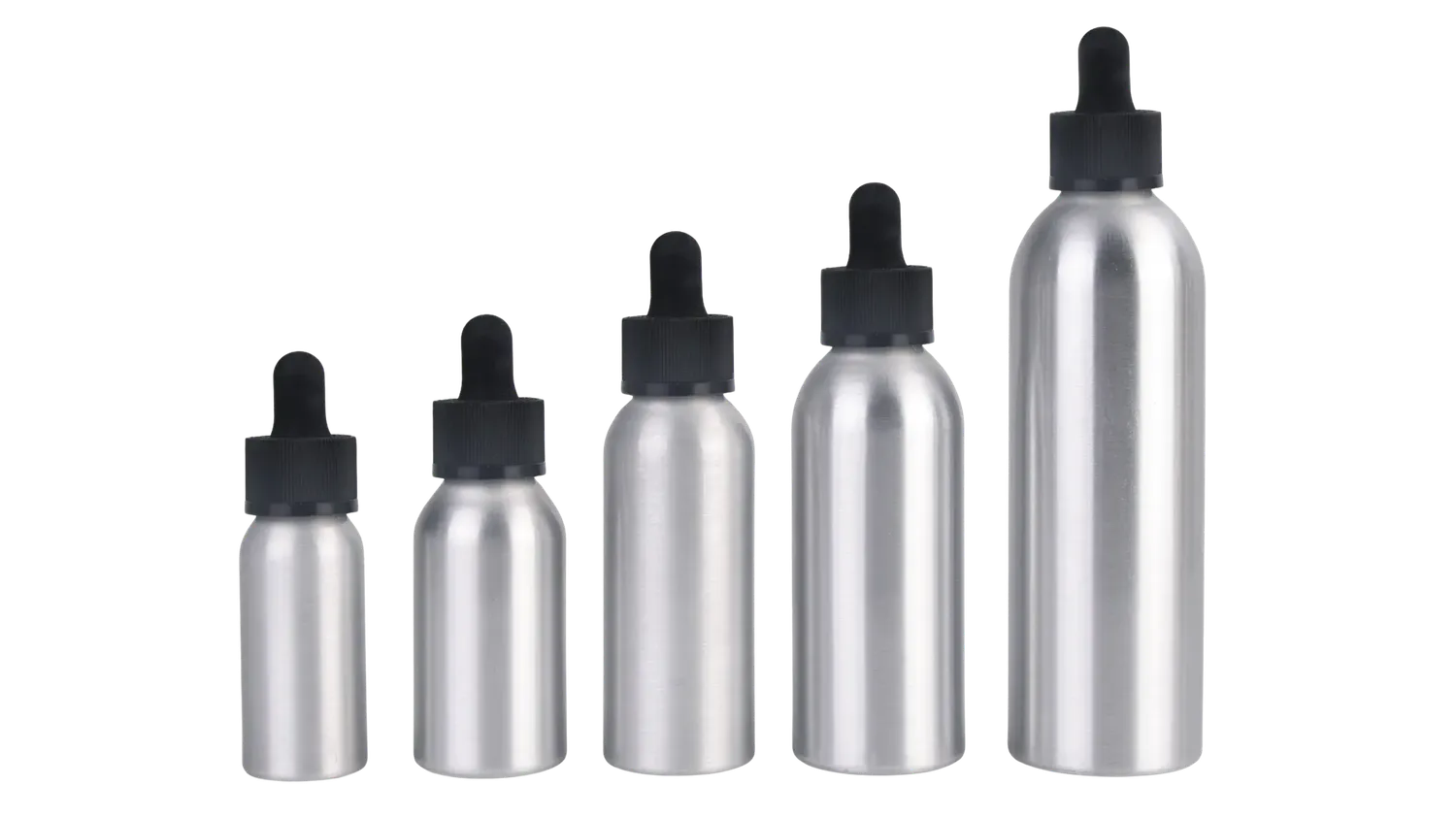 Наши алюминиевые флаконы с пипеткой доступны в объемах от 30 мл до 100 мл, включая популярные размеры 30 мл, 50 мл и 100 мл, и идеально подходят для средств личной гигиены, путешествий или использования в больших объемах. Возможность нанесения маркировки в мл и унциях обеспечивает совместимость с мировыми рынками, предлагая идеальный размер для уникальных потребностей вашего продукта.