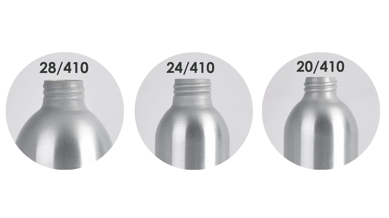 Наши алюминиевые бутылки имеют стандартные для отрасли размеры горлышка: 20/410, 24/410, 28/410 и 38 мм, что обеспечивает совместимость с широким спектром полипропиленовых и алюминиевых крышек. Такая конструкция позволяет легко интегрировать бутылки в существующие производственные линии, исключая необходимость дорогостоящей перенастройки оборудования и повышая эффективность работы. В сочетании с нашими высококачественными крышками вы получите надежный и стильный внешний вид.