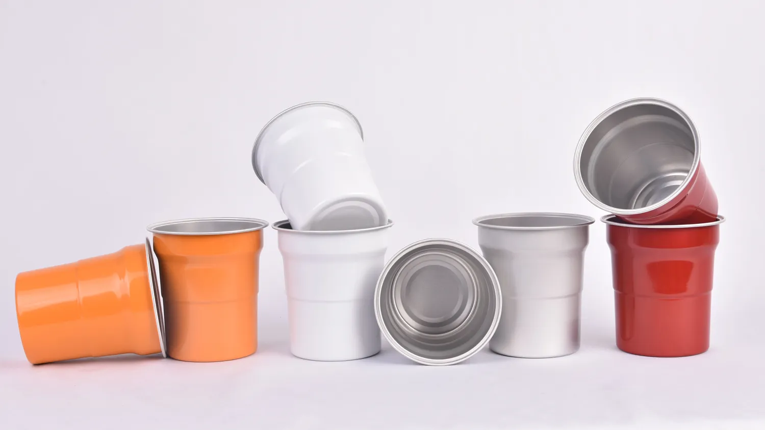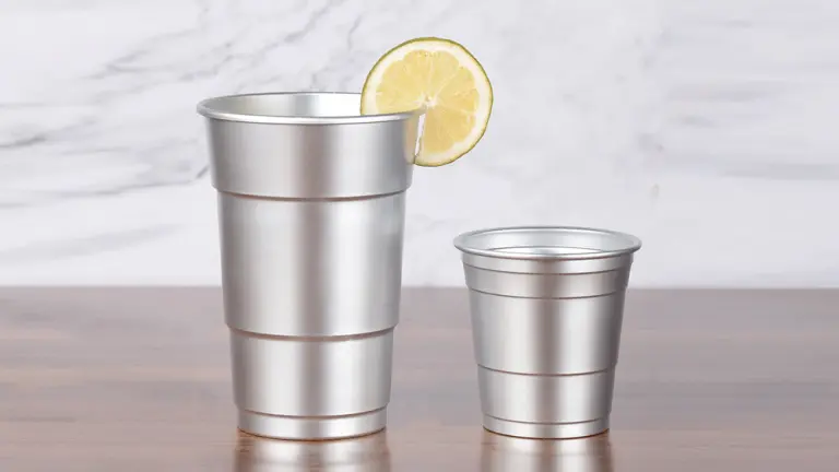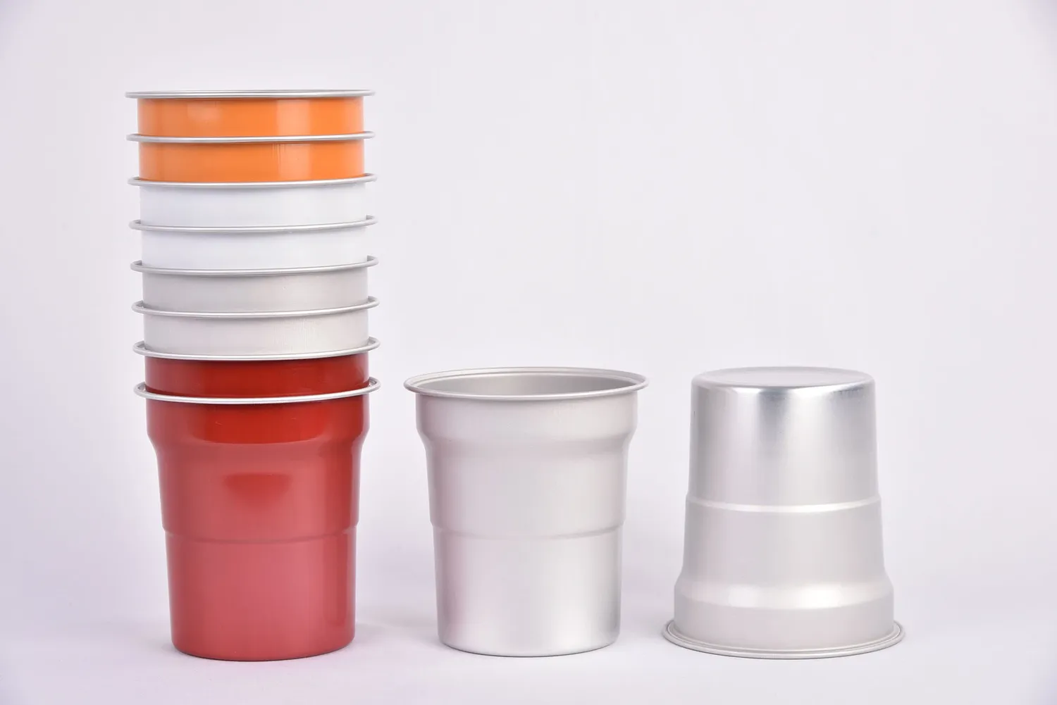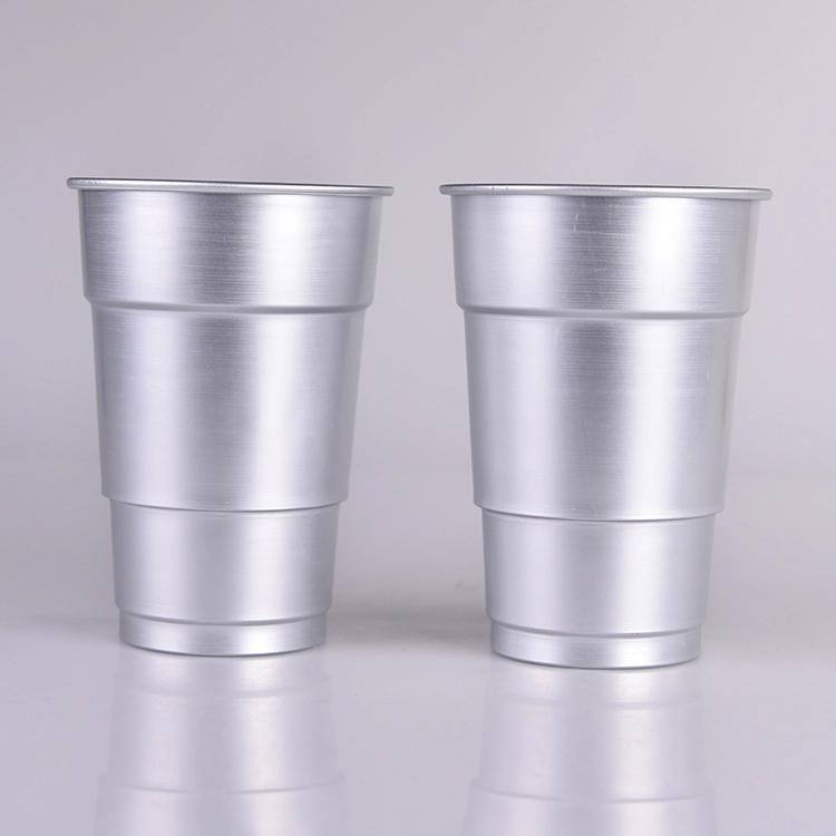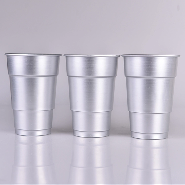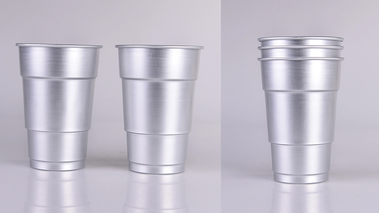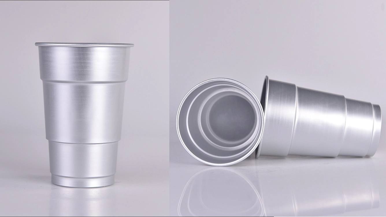 Серия алюминиевых стаканчиков Solo Cup отличается культовым дизайном, оптимизированным для штабелирования, удобной транспортировки и хранения. Изготовленные из легких алюминиевых листов толщиной 0,2–0,3 мм с помощью многоступенчатого процесса вытяжки, эти стаканчики имеют ступенчатые боковые стенки для повышения прочности. Разработанные в первую очередь как одноразовые алюминиевые стаканчики, они идеально подходят для масштабных мероприятий, таких как спортивные соревнования. Из-за производственных ограничений стаканчики обычно имеют коническую форму со ступенями, а печать ограничена прямой центральной частью, без полного покрытия на 360 градусов.