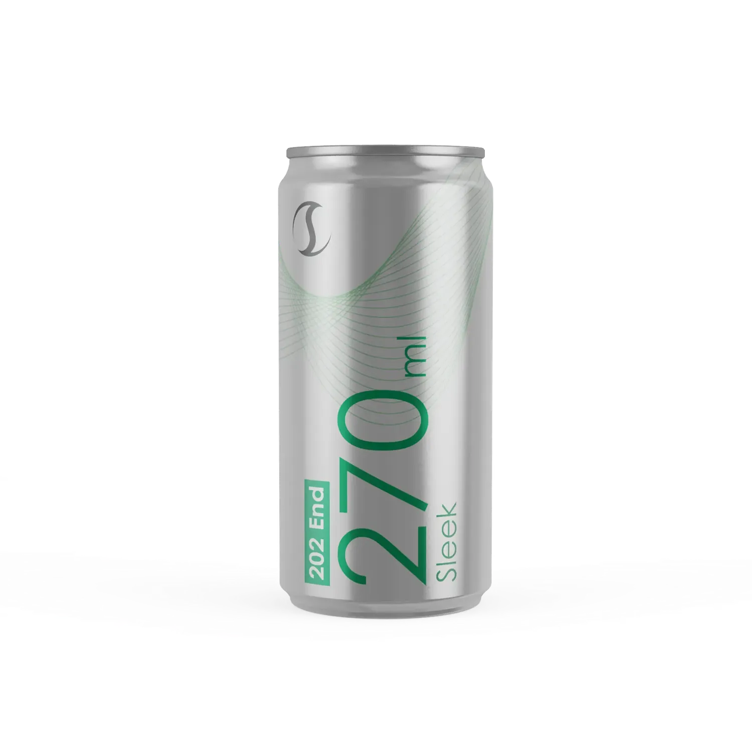 Shining Packaging — ведущий производитель и поставщик высококачественных алюминиевых банок. Наша элегантная банка объемом 270 мл предлагает средний объем, высокий и узкий силуэт, который максимально увеличивает плотность размещения на полках и пространство для брендинга. Она сохраняет целостность продукта благодаря защите от света и кислорода, быстро охлаждается, легко транспортируется и полностью пригодна для вторичной переработки — идеально подходит для газированных напитков премиум-класса, холодного чая, готовых к употреблению напитков и тонизирующих средств.