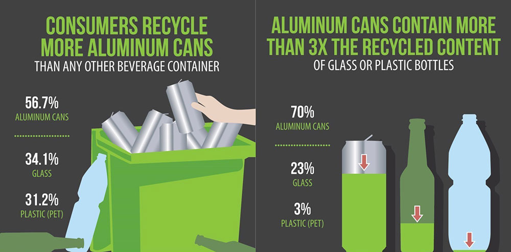 В своем анализе жизненного цикла 2016 года (LCA) Алюминий Ассоциация сделала смелое заявление о том, что алюминий является «самой экологичной тарой для напитков в мире».