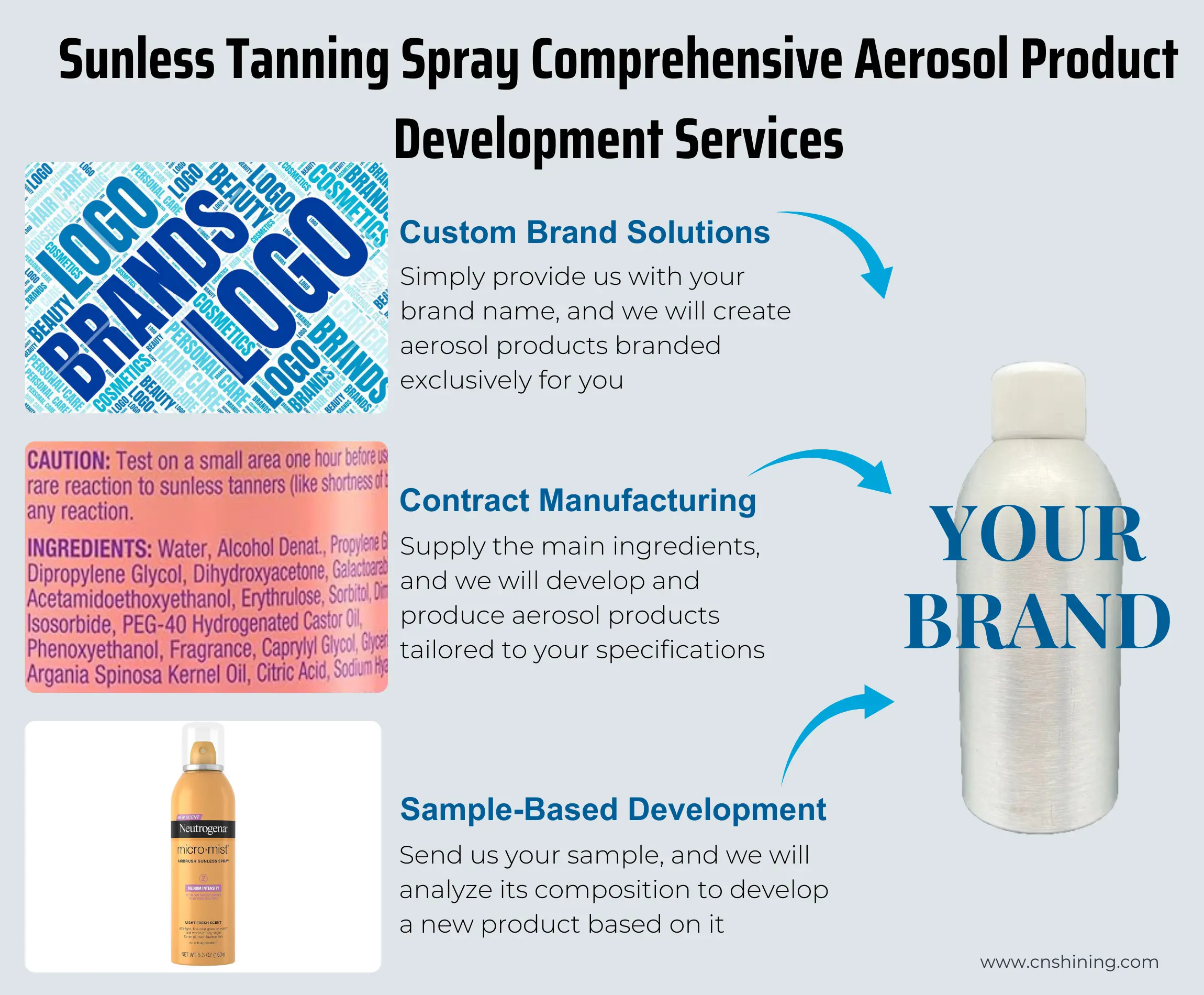 If you still don’t understand the ingredients mentioned above or if you need to customize your own Sunless Tanning Spray aerosol, feel free to contact us. We specialize in producing Sunless Tanning Spray aerosols and also offer finished product filling services. Contact us today!